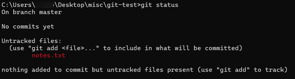 but it’s not being tracked yet — it’s completely new to Git.That’s why it shows up as “Untracked files” in red.