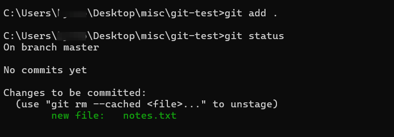 meaning Git is now preparing to include it in the next commit.You’ll see the file listed under “Changes to be committed”, which indicates it’s ready to be saved with