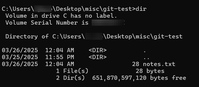For this walkthrough, I’ll be using a test folder named “git-test”,